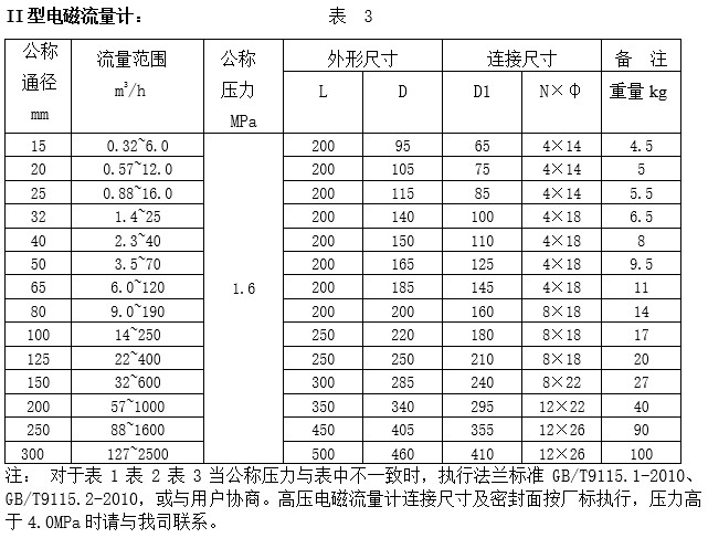 II型電磁流量計口徑DN(mm): 10、15、20、25、32、40、50、65、80、
